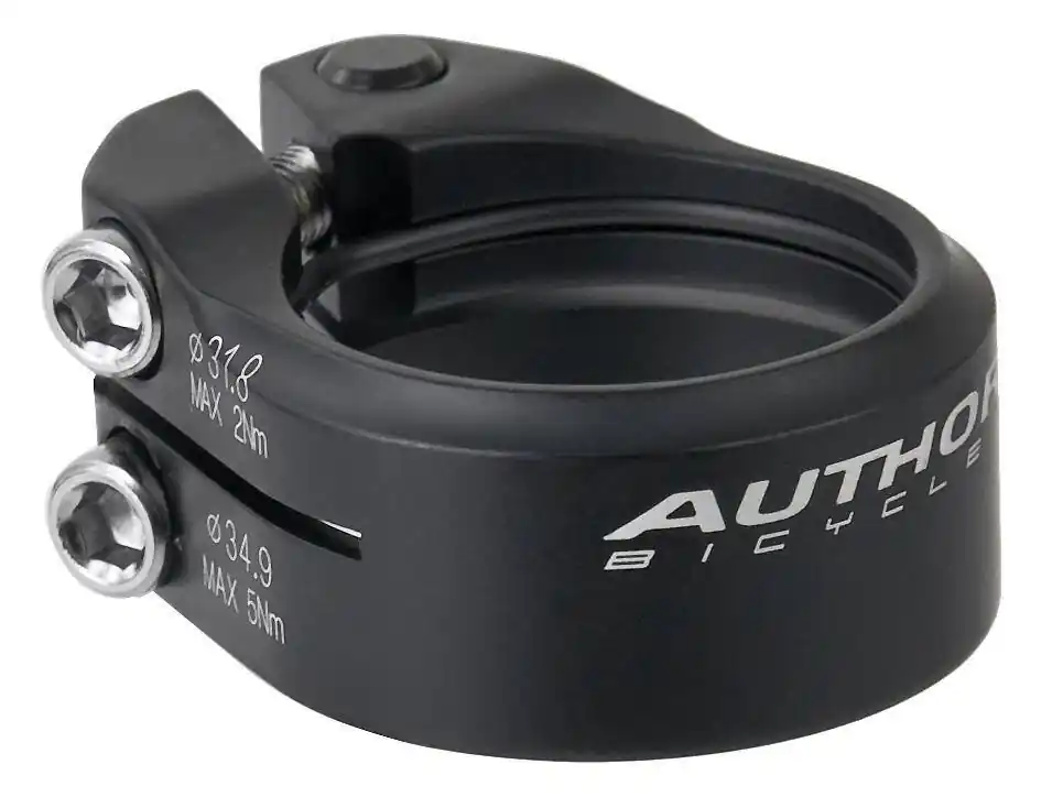 Obejma ze śrubą Author 31,6 – 31,8/34,9 mm pod karbon Konstrukcja zaprojektowana specjalnie pod ramy i wsporniki z karbonu!Obejma wspornika siodła skręcana 2 śrubami imbusowymi. Gumowy o-ring w górnej części obejmy łagodzi nacisk na ściankę sztycy podsiodłowej zapobiegając wgnieceniu i późniejszemu złamaniu lub rozerwaniu wspornika podsiodłowego.Dolna część obejmy zaciska się na ramie (34,9 mm), górna część na wsporniku siodełka (31,6 – 31,8 mm). Konstrukcja zapobiega samocznynnemu zsuwaniu się sztycy. Wykonana ze stopu aluminium 6061-T6. Cechy produktu Producent: AuthorModel: ACO-315Kolor: czarnyŚrednia waga: ~39 g