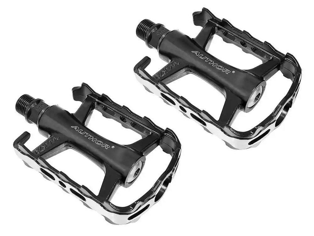 Pedały Author APD-427 Pedały Author APD-427 są bardzo lekkimi pedałami wykonanymi ze stopu aluminium 6061-T6. Posiadają osie ze stali Cr-Mo obracające się na uszczelnianych łożyskach maszynowych.W komplecie znajdują się 4 odblaski, które można przykręcić do pedałów w celu zwiększenia bezpieczeństwa na drodze. Parametry Producent: AuthorModel: APD-427Wymiary platformy: 92 x 63 mmOświetlenie odlaskowe: TAKRozmiar gwintu: 9/16″Sposób montażu: klucz płaski 15 mm lub klucz imbusowy 6 mmŚrednia waga: 320 g /kpl. Cena dotyczy pary.