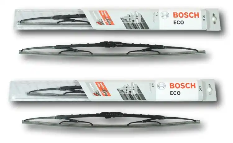 Nowe wycieraczki – zapakowane w oryginalne opakowanie producenta – cena zakupu dotyczy 1- kompletu (strona kierowcy i pasażera).Wycieraczki Bosch Eco są przeznaczone dla klientów, którzy poszukują wycieraczek w korzystnej cenie, a jednocześnie dobrych jakościowo.Konstrukcja wycieraczek Bosch Eco to sprawdzone już wcześniej rozwiązanie, a mianowicie metalowy, lakierowany szkielet z nitowanymi przegubami. Są to wycieraczki przeznaczone do montażu na mocowaniu hakowym.Pióra wycieraczki Bosch Eco to naturalna guma i grafitowa powłoka poślizgowa, dzięki której wycieranie szyby jest skuteczne nawet w niesprzyjających warunkach atmosferycznych.Zamontowany na stałe adapterQuick-Clip umożliwia łatwą i szybką wymianę wycieraczek Bosch Eco.Jak dbać o wycieraczki:- pamiętaj, aby dbać o gumę wycieraczki usuwając z niej brud, owady itp., które osiadły podczas jej pracy (wykorzystać można do tego łagodny detergent); zapominanie o usuwaniu zanieczyszczeń, może doprowadzić do uszkodzenia gumy wycieraczki- nigdy nie używaj wycieraczek, gdy szyba jest sucha; tarcie gumy po suchej szybie może doprowadzić do szybkiego jej zużycia- jeżeli wycieraczka na szybie podskakuje, może to być oznaką, że ramię wycieraczki jest skrzywione; w takim przypadku należy dokonać jego regulacji- jeżeli planujesz pozostawienie samochodu na słońcu przez kilka dni, ustaw wycieraczki tak, aby nie stykały się z szybą- po wizycie na myjni, pamiętaj, aby zawsze dokładnie oczyścić szybę, ponieważ znajdujący się na niej wosk, może powodować przeskakiwanie wycieraczki- pamiętaj również, aby nie uruchamiać wycieraczek na zamarzniętej szybie; może to bowiem doprowadzić do ich uszkodzenia lub oderwania gumy od mocowania.Czy wiesz że:- pierwsza wycieraczka wprowadzona została przez Boscha w okresie międzywojennym w 1926r. i napędzana była silnikiem elektrycznym- pierwszą wycieraczkę bezprzegubową – Bosch wprowadził do produkcji w 1999r.- 750000 cykli oczyszczania! Tak wycieraczki Bosch są testowane pod kątem wytrzymałości mechanicznej- wycieraczki Bosch są przystosowane do pracy w temperaturach od -30 do +80 stopni Celsjusza.